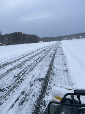 Det har under de senaste dygnen kommit runt 25 cm snö, banans bredd är 6 meter och 1,4 km lång. Det betyder att 2100 m3 snö plogats undan.